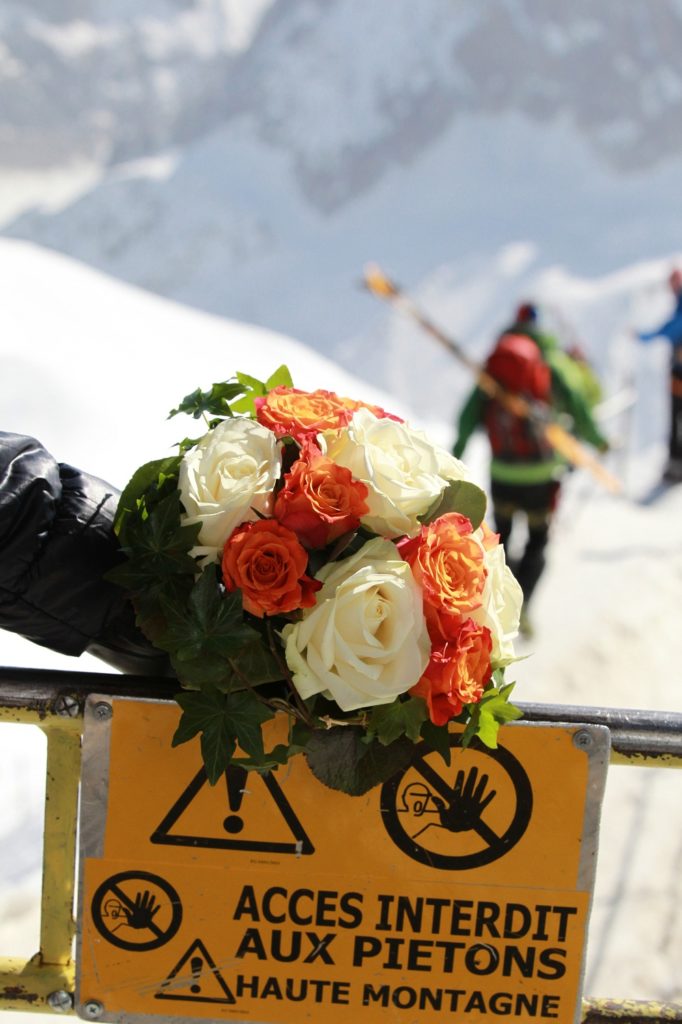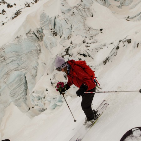 – skiing on a glacier and exchanging vows with icy blue crevasses in the background