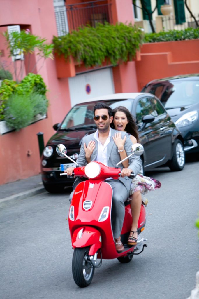 The weekend before the wedding they took a scooter through the winding Riviera roads that lead up to the old town of Eze. The couple danced in the streets of Eze and walked the cobblestone paths through the historic and romantic town.