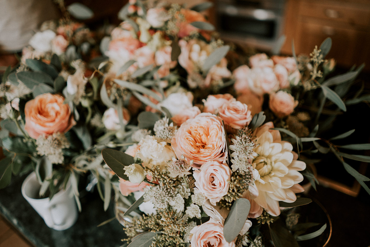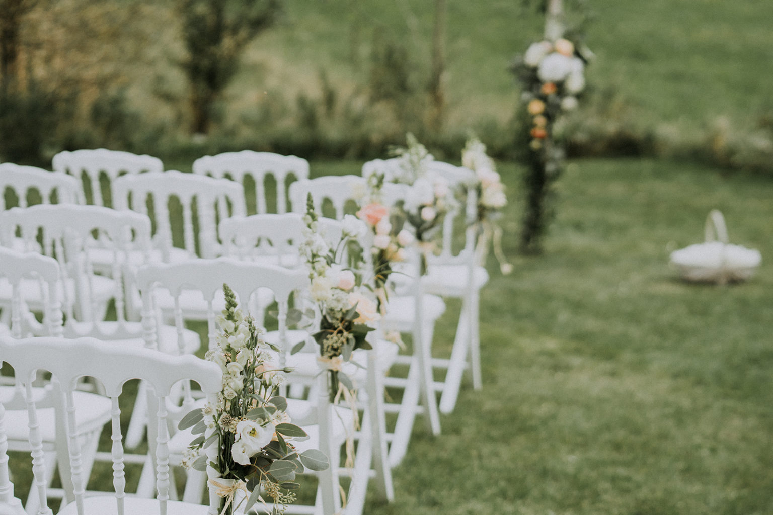 The ceremony was held in a chalet garden with views looking up toward the Aiguille du Midi, Mont-Blanc and Bossons glacier. Chamonix never has a shortage of views. The couple had an accordion player and violinist play ‘Café de Paris’ style music for the ceremony and cocktail hour.