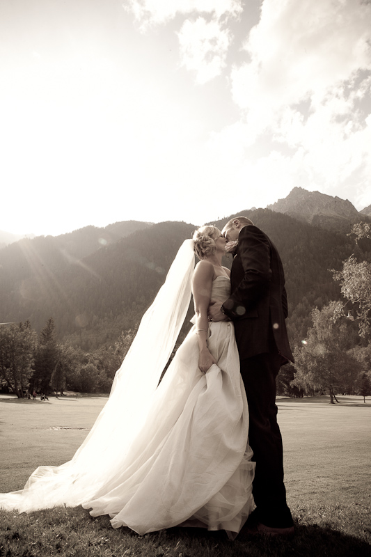 A light silver Vera Wang dress, a touch of pale pink and a gorgeous smiley bride were a few elements of perfection to this French mountain wedding.